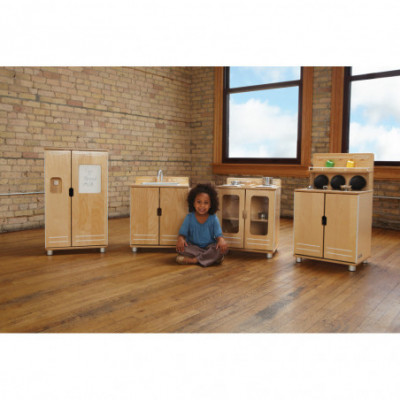 Four piece set includes Stove, Sink, Fridge & Cupboard - the ultimate in creative play! Loads of interactive elements keep kids entertained. Ample storage and aesthetic design that adults will appreciate. Created by renowned modernist designer—Edgar Blazona—for a sleek, cohesive, and modern design.